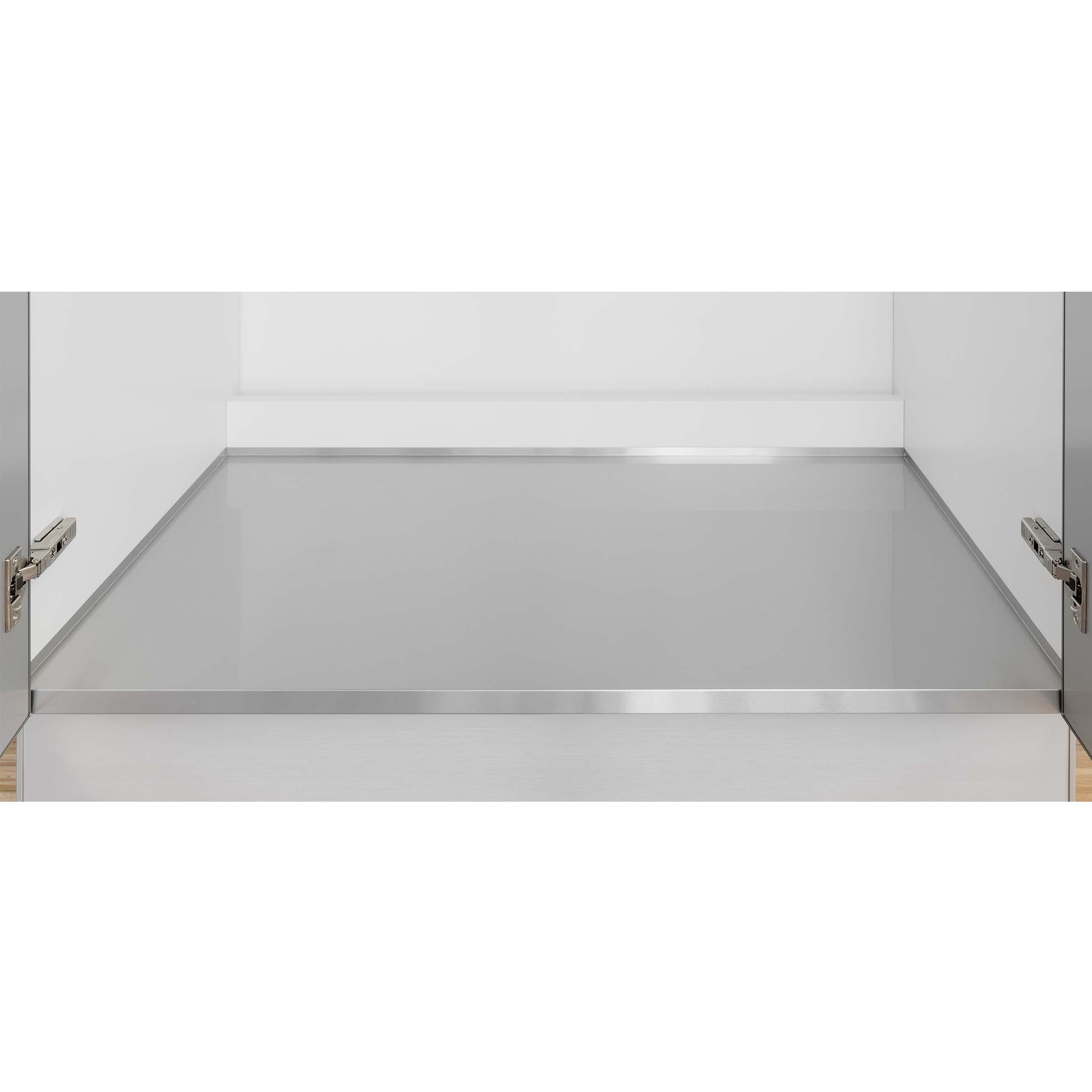 Cabinet side panels, 18 mm thick. Flat plain or gloss painted aluminium protector. Curved side profiles.
